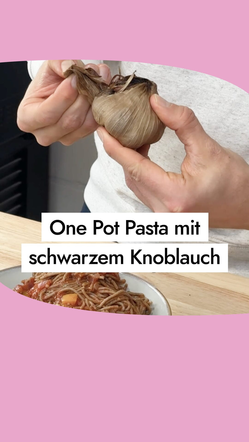 Schwarzer Knoblauch ist mindestens sechs Monate haltbar, was ihn zu einem langfristig nutzbaren Lebensmittel macht. Achte darauf, ihn in einem luftdichten Behälter aufzubewahren, um seine Qualität und seinen Geschmack zu bewahren. Dazu kannst du die mitgelieferte Tüte einfach mit einem Clip verschließen.