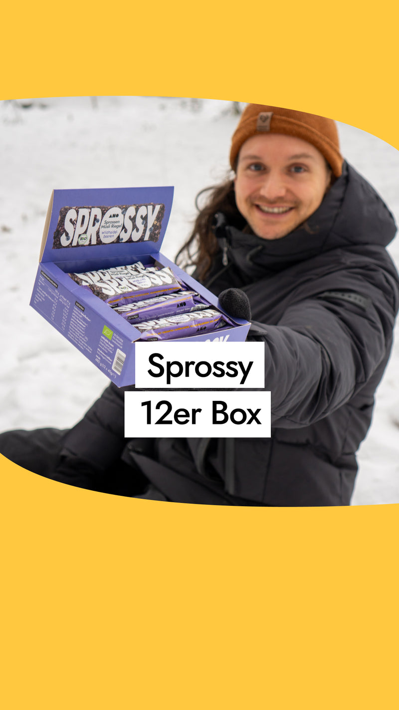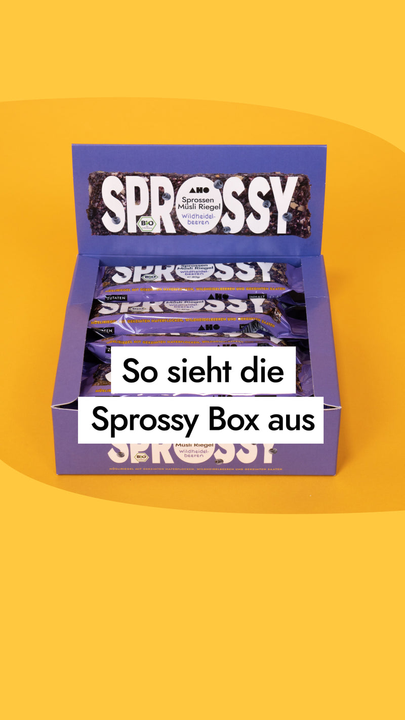 Der AHO Sprossy ist der erste Rohkost-Riegel aus gekeimten Saaten und Heidelbeeren aus Wildsammlung. Endlich hast du einen Wegbegleiter, der den kleinen Hunger im Alltag nachhaltig befriedigt. Dieser Riegel darf deinen heiligen Tempel wirklich betreten.